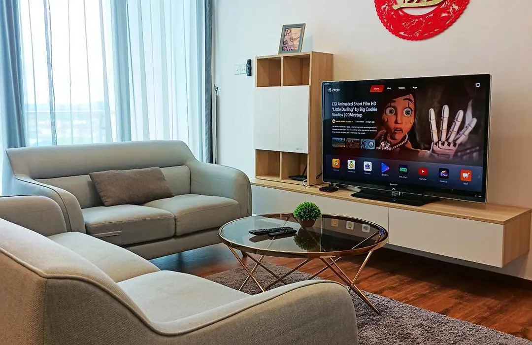 Furnished with a sofa and a work desk, Mupify Homestay Jazz Suites 2 Vivacity A12 comprises a sitting area fitted with climate control. Along with sound-proofed windows, guests are provided with a variety of media choices, including a flat-screen TV with satellite channels. Featuring a bidet, a walk-in shower, and a separate toilet, a bathroom provides a hairdryer and bath sheets.